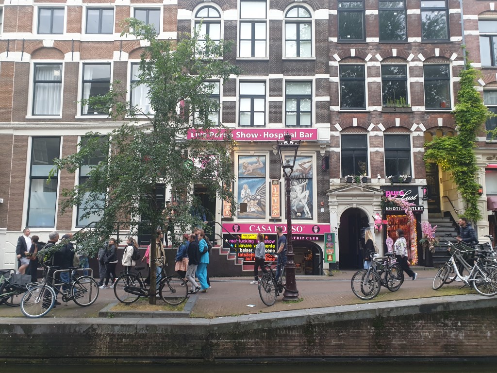 The Red Light District is an experience in itself. Properly known as De Wallen it is actually also home to ordinary residents. Although you sort of know what to expect with sex workers standing in windows and what not, it still hijacks your amazement when you see it in real life. In between vibrant bars and smokey cafès there are women standing in windows, mostly dressed in knickers and lingerie, and they are very certainly selling sex. Prospective clients can literally just stand there in the middle of a busy street and ask a scantily clad woman how much for a blowjob or a shag.